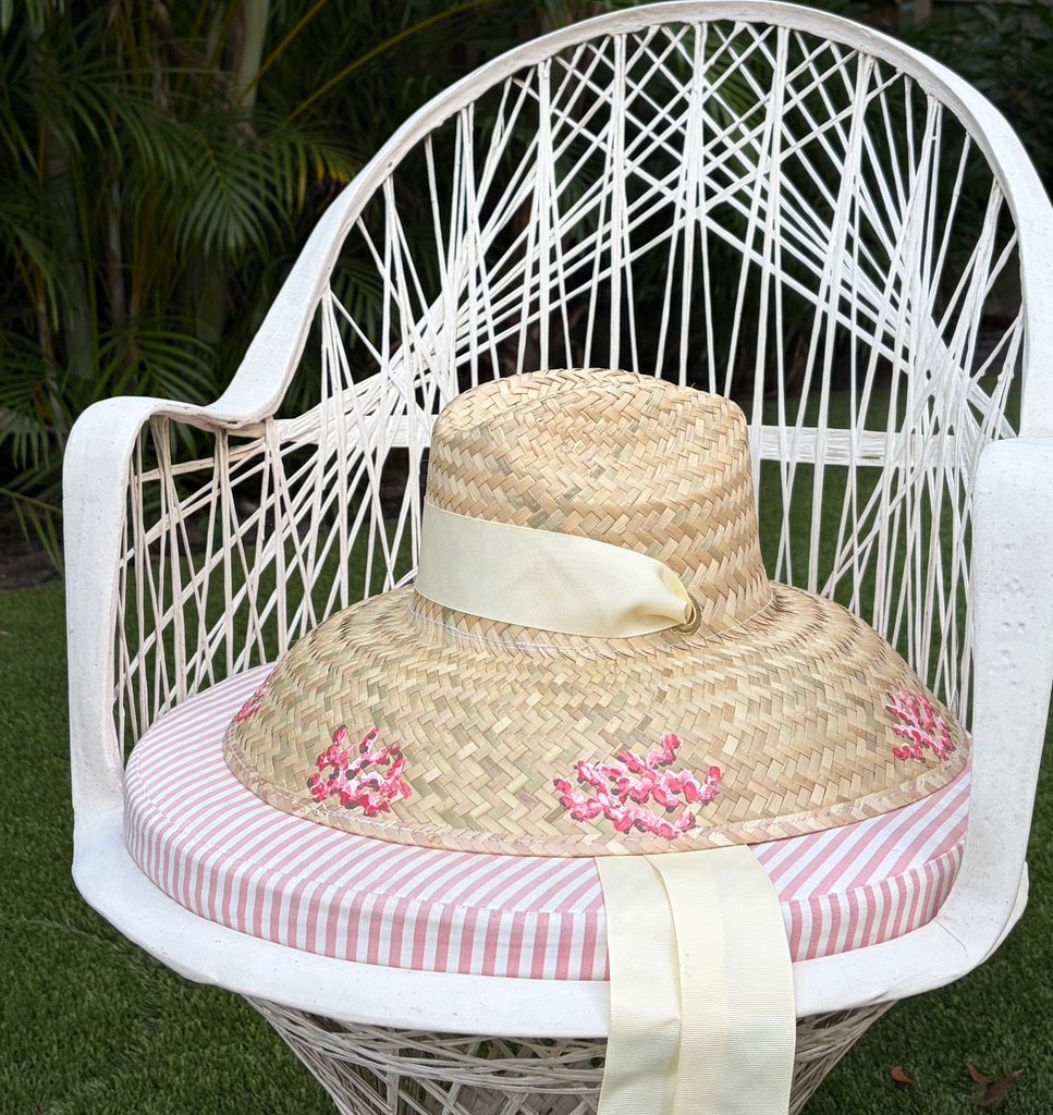 Emmie Ruth x SBB - Hand-Painted Coral Begonia Sun Hat with Ivory Grosgrain