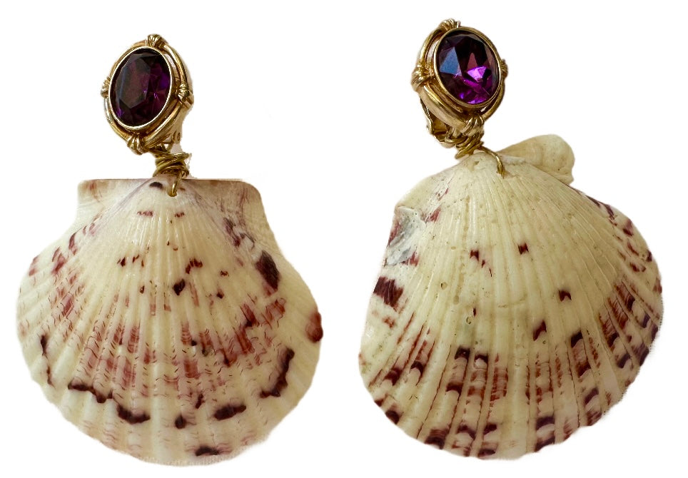 All one-of-kind and handmade by Sarah, using shells, vintage textiles, and collected charms.