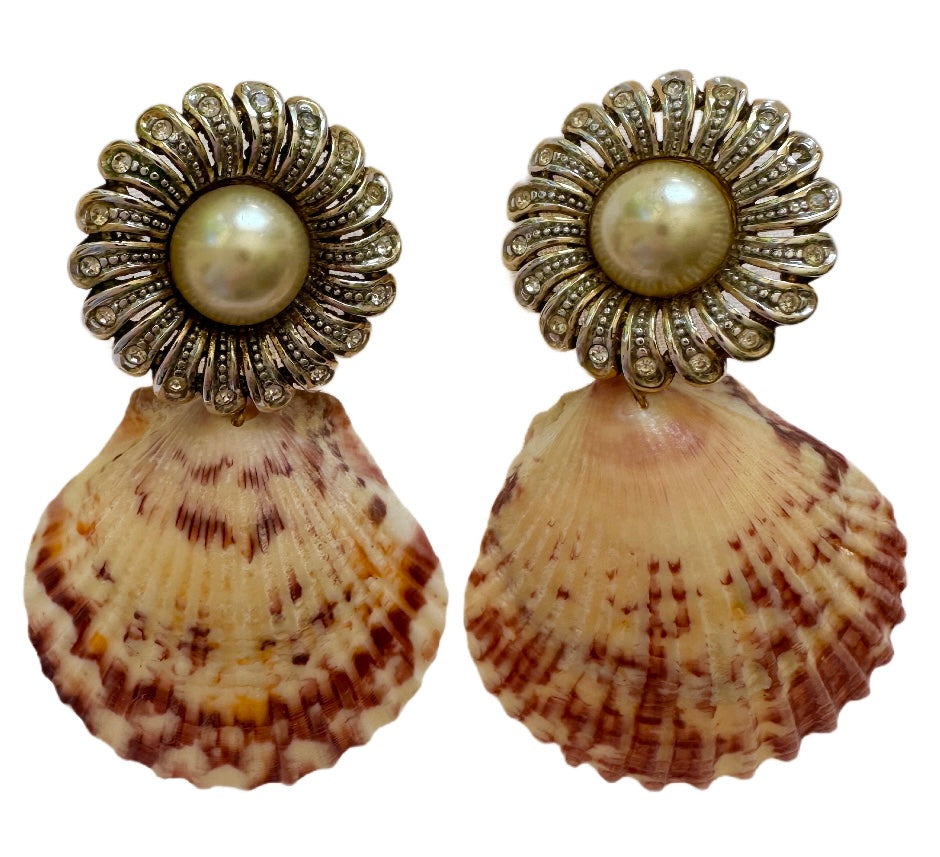 Vintage Daisy Clip-On Earrings Reworked with Shells - One-of-a-Kind