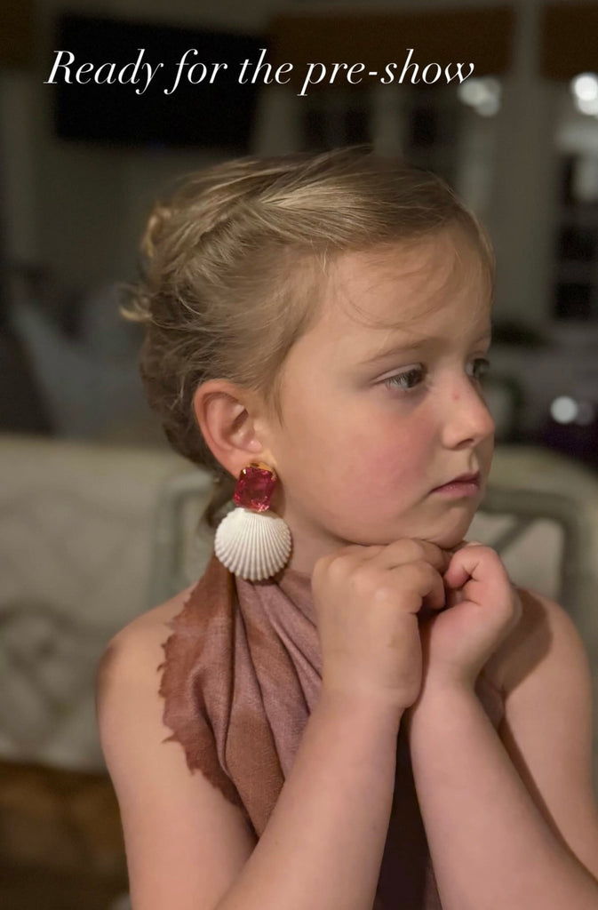 Made-to-order vintage clip-ons adorned with shells sourced from estate sales in Palm Beach. All handmade by Sarah with one-of-a-kind second-hand materials.