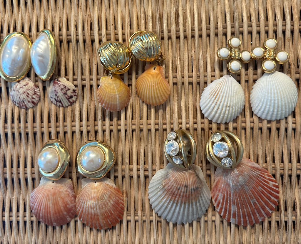 Vintage Clip-On Earrings Reworked with Shells - PreOrder Only - Shipping October 5